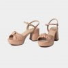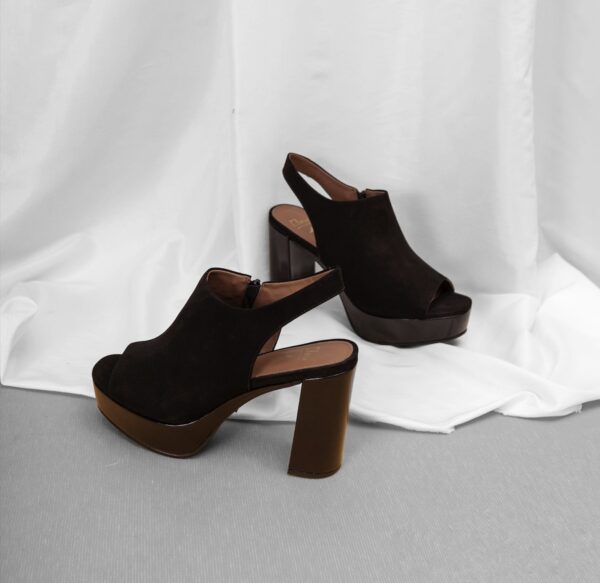 Altura 10 cm, Plataforma 3 cm. La forma de su taco y el de la capellada cubierta hacen que esta sandalia sea muy cómoda, segura y estable.